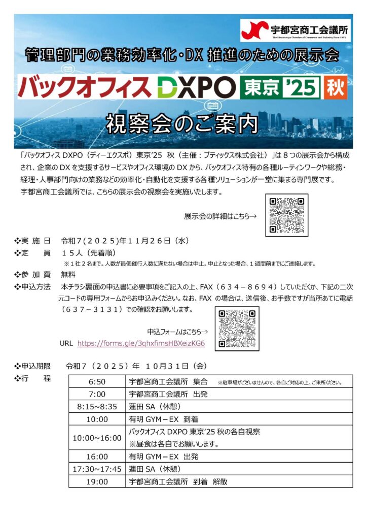 「バックオフィスDXPO(ディーエクスポ)東京’25秋」視察会のご案内(申込:10/31まで)