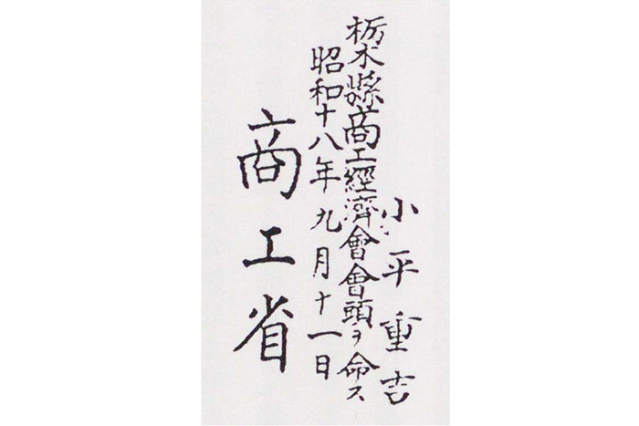 | 1943年 9月 | 栃木県商工経済会設立認可(会頭 小平重吉) |